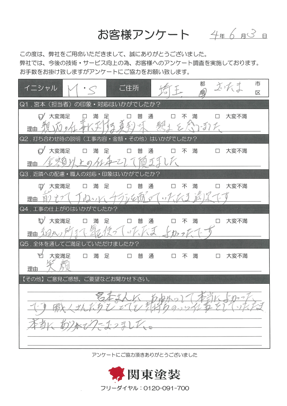 この度は塗装工事をさせていただきありがとうございます。色の件もとても気に入っていただき嬉しいです。ありがとうございました。