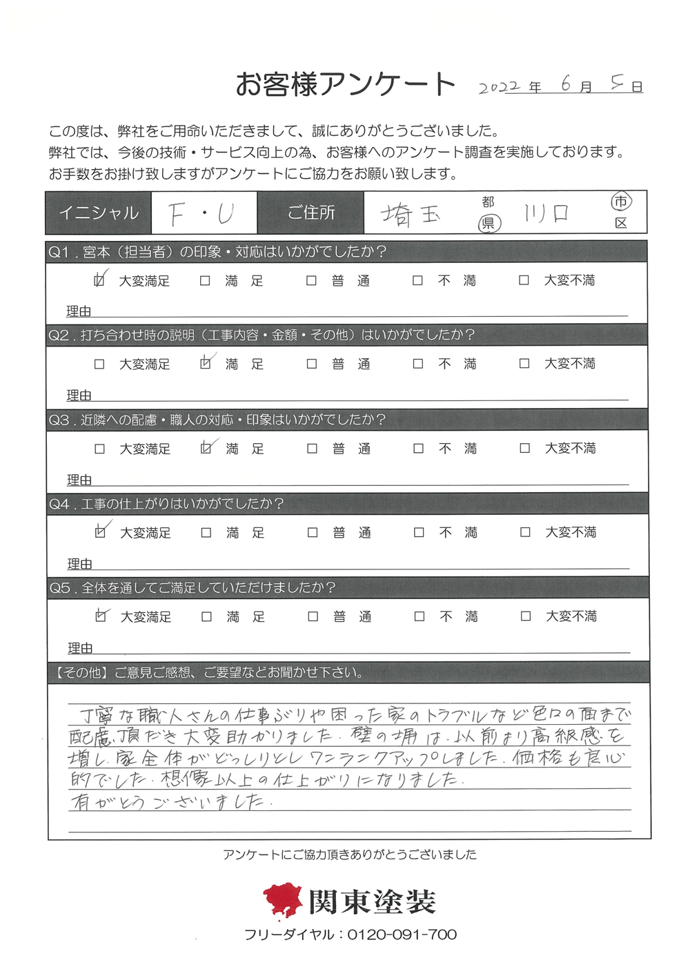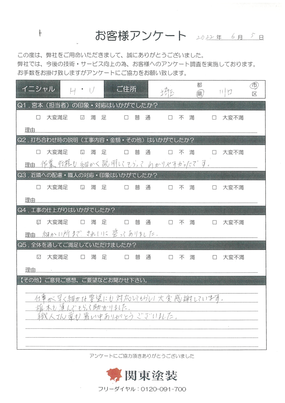 この度は塗装工事をさせていただきありがとうございます。色の件もとても気に入っていただき嬉しいです。ありがとうございました。